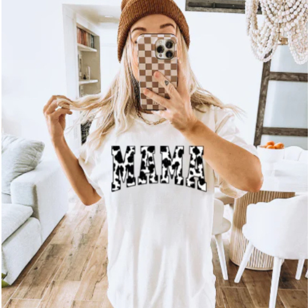 Moo-ve over boring t-shirts, Mama Cow Print is here to add some fun to your wardrobe! This fun t-shirt features a man cow print that will surely turn heads and make you the talk of the pasture. (No bulls, just bold style!)